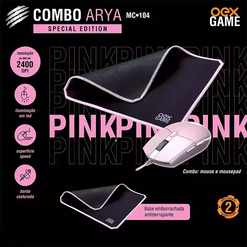 Apresentamos o Combo Mouse e MousePad ARYA MC-104, perfeito para quem busca precisão e conforto no dia a dia. O mouse possui 6 botões, LED branco e resolução ajustável (800 a 2400 dpi), ideal para diferentes necessidades. Com cabo de 1,6m, é compatível com Windows e Mac OS.